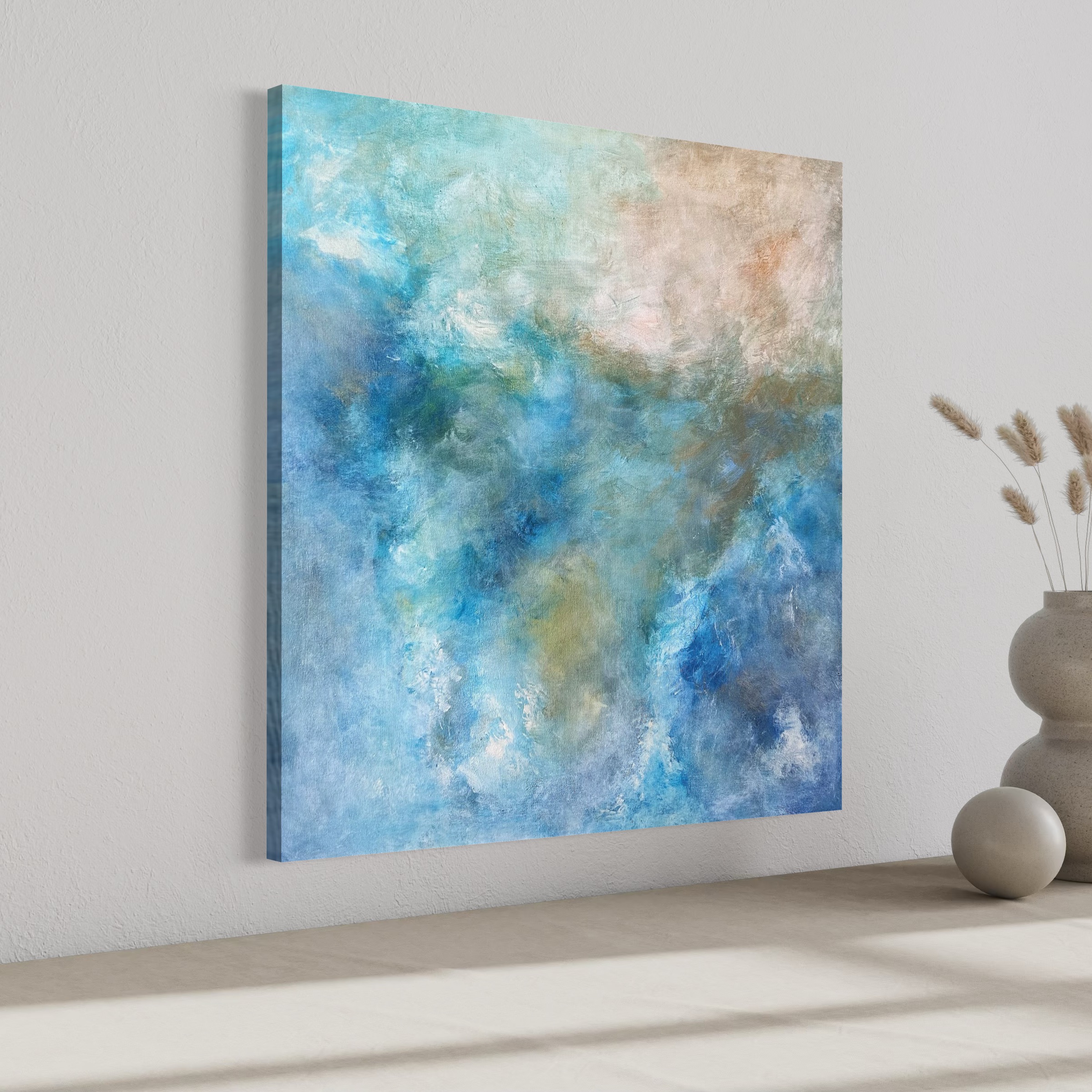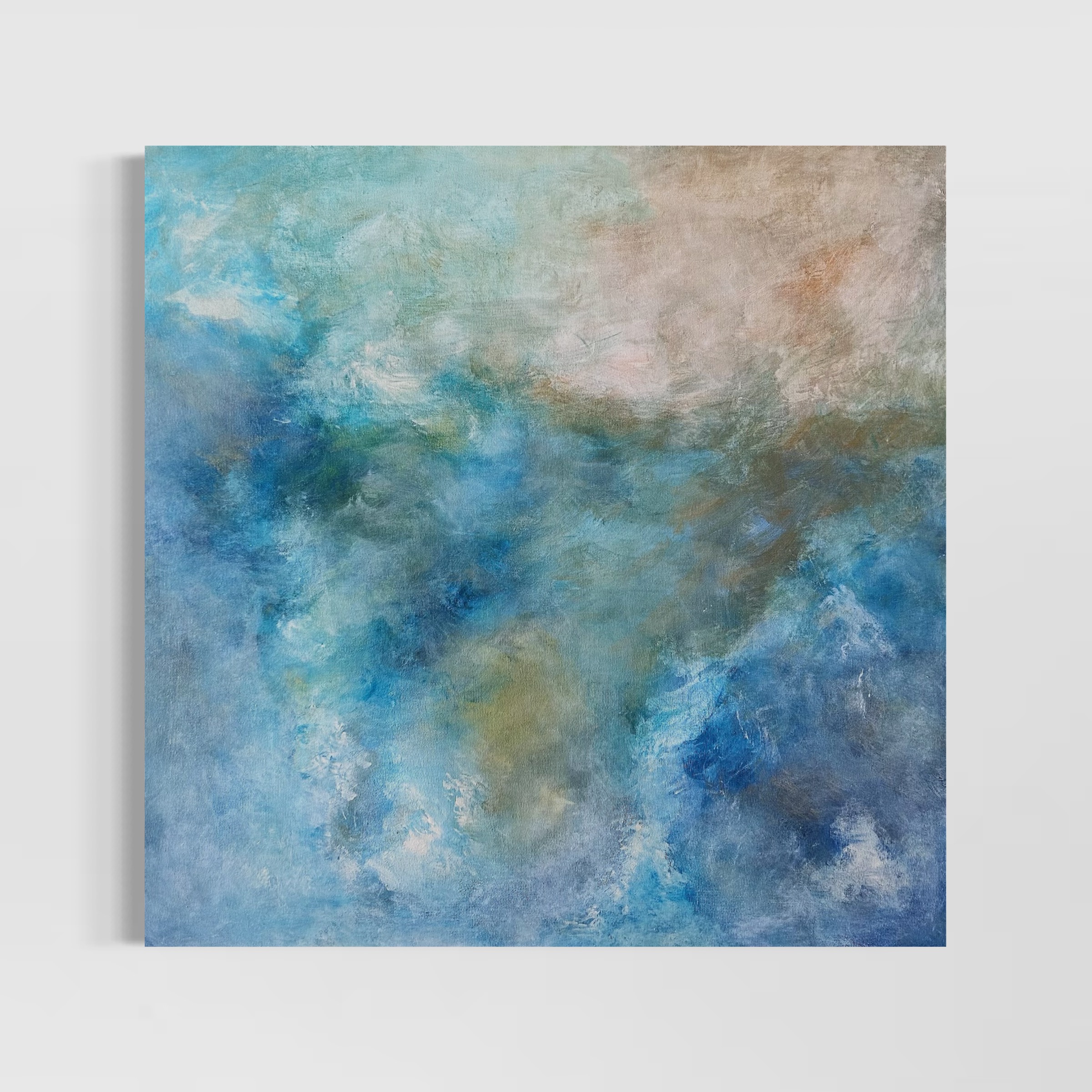 La lecture de l’œuvre s’articule selon une double perspective. Horizontalement, les couches se déploient comme les différents niveaux océaniques : de la surface scintillante aux profondeurs abyssales où dominent les bleus profonds du lapis-lazuli. Verticalement, l’œuvre se structure en bandes atmosphériques qui évoquent autant les formations géologiques que les mouvements ascendants des courants marins.
