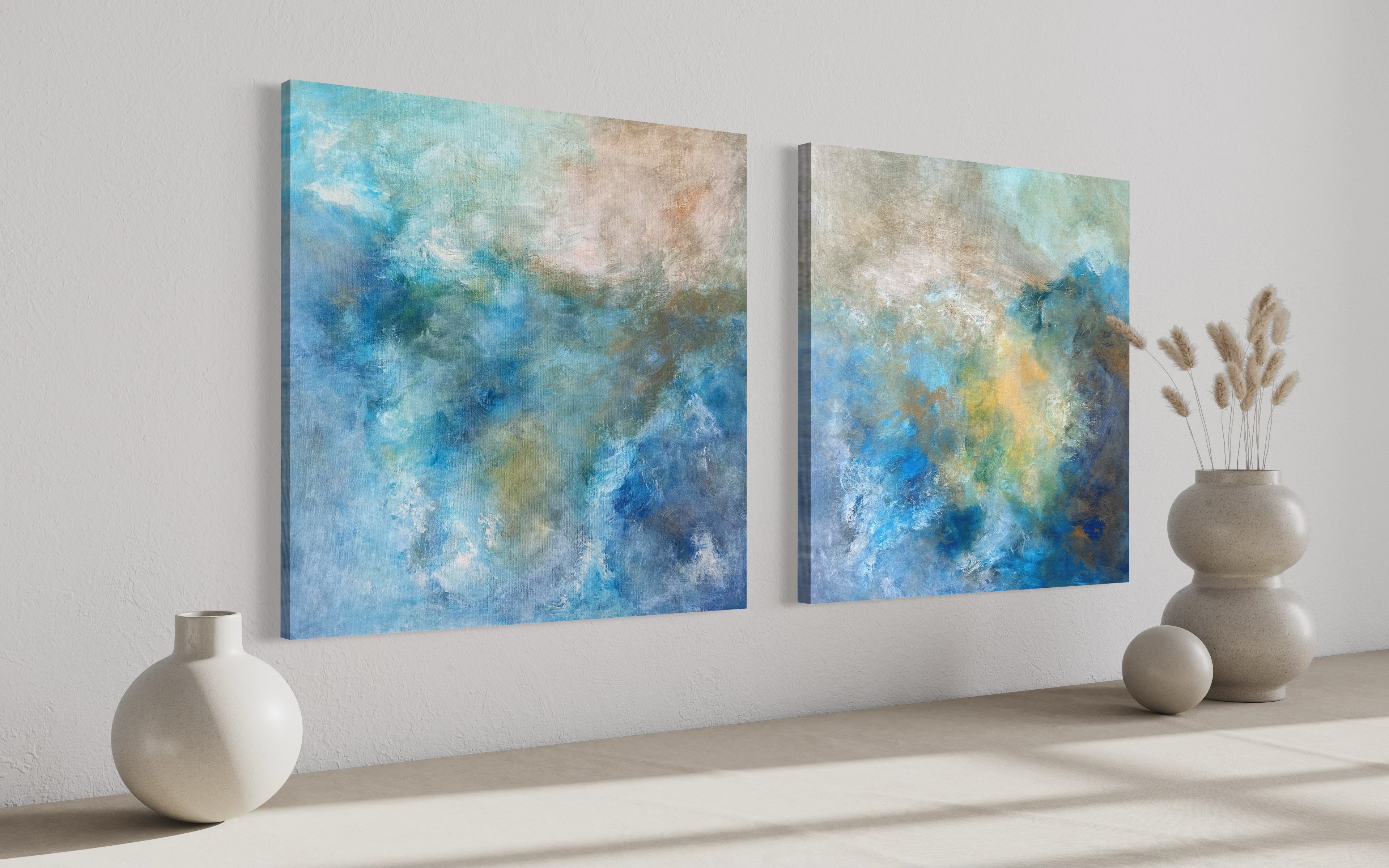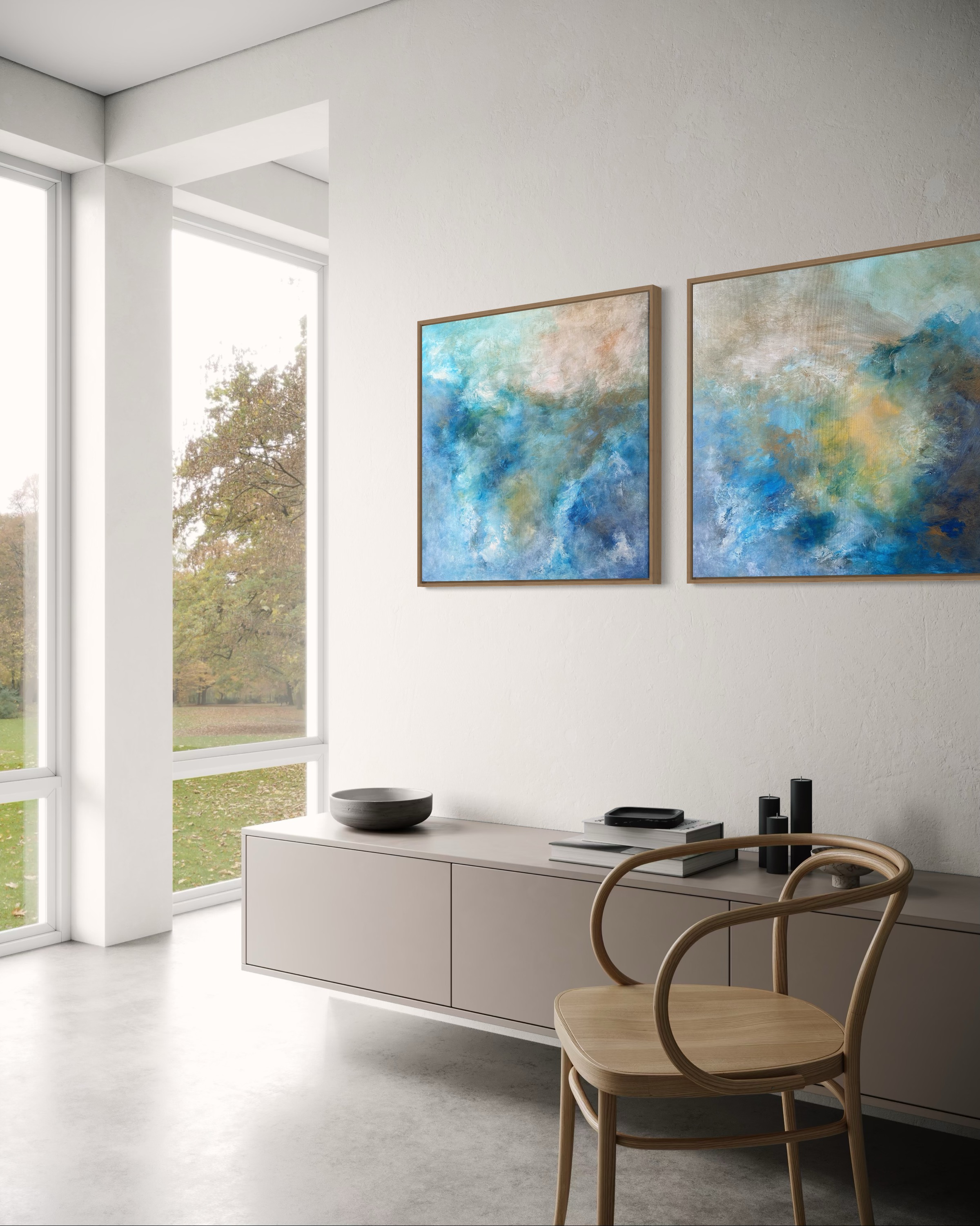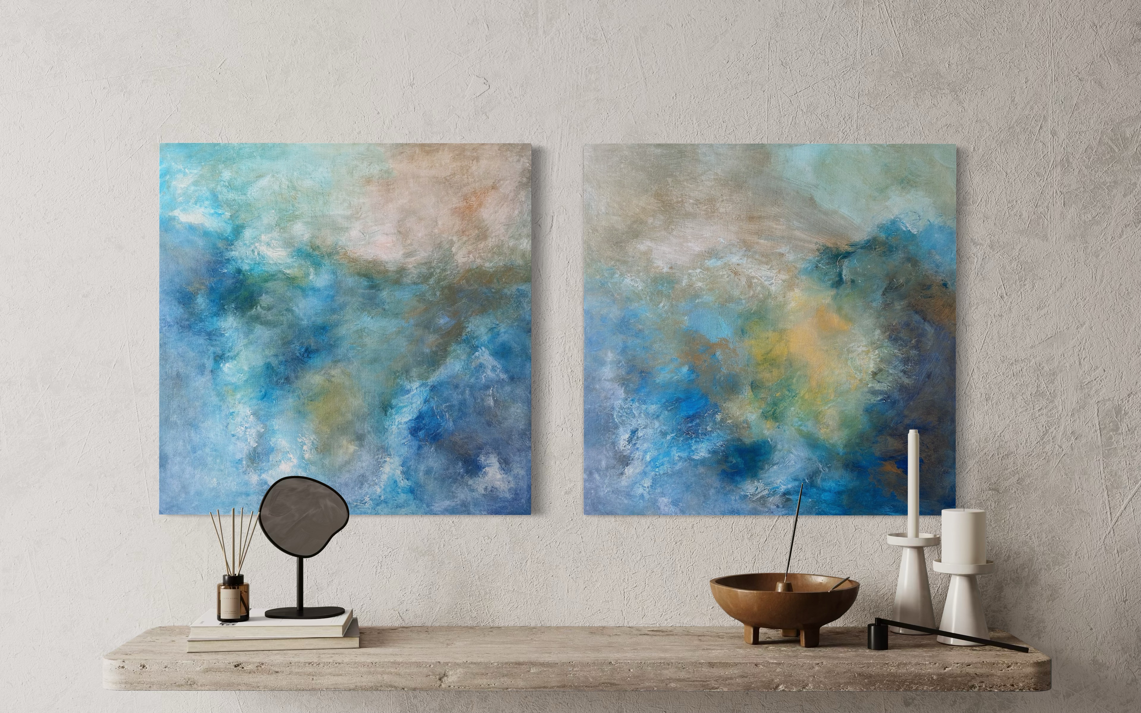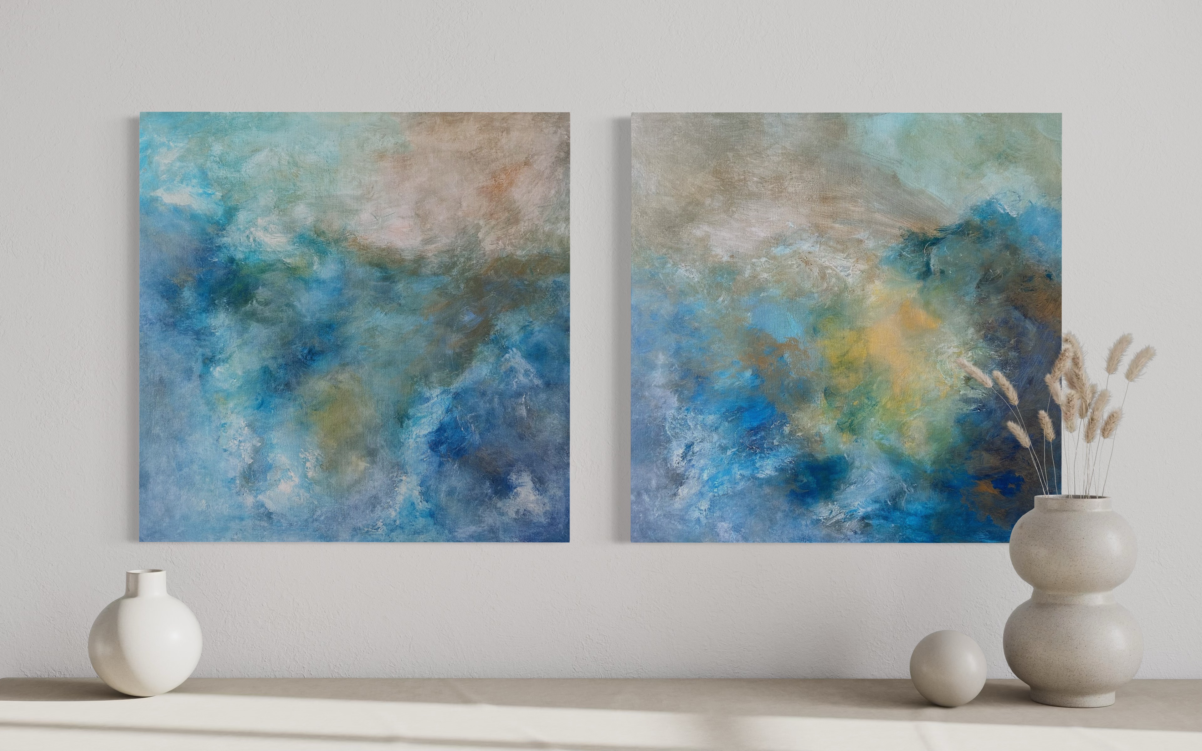 Ce dyptique révèle une architecture complexe de strates superposées qui invitent à une plongée méditative dans les profondeurs de la matière et de l’émotion.
