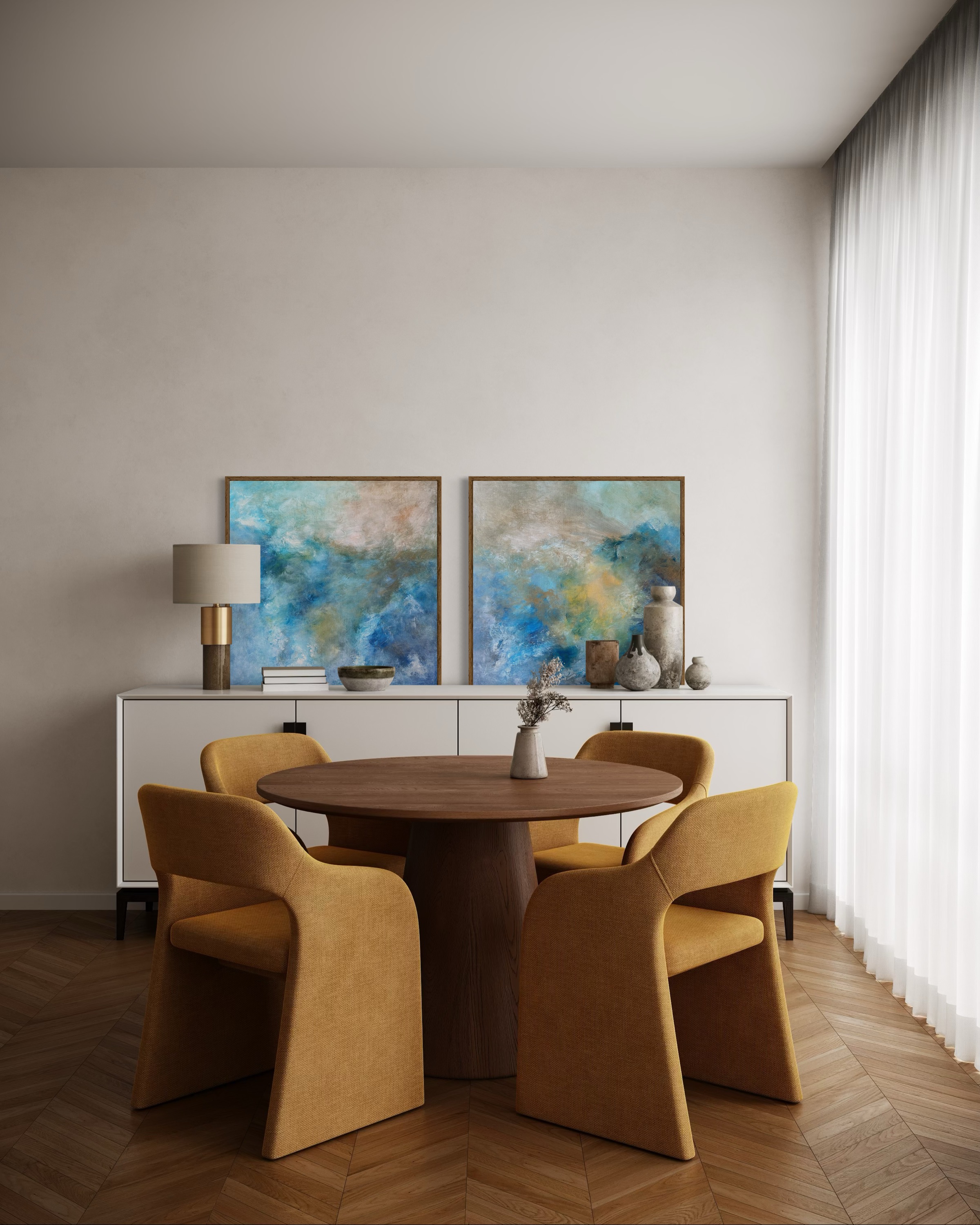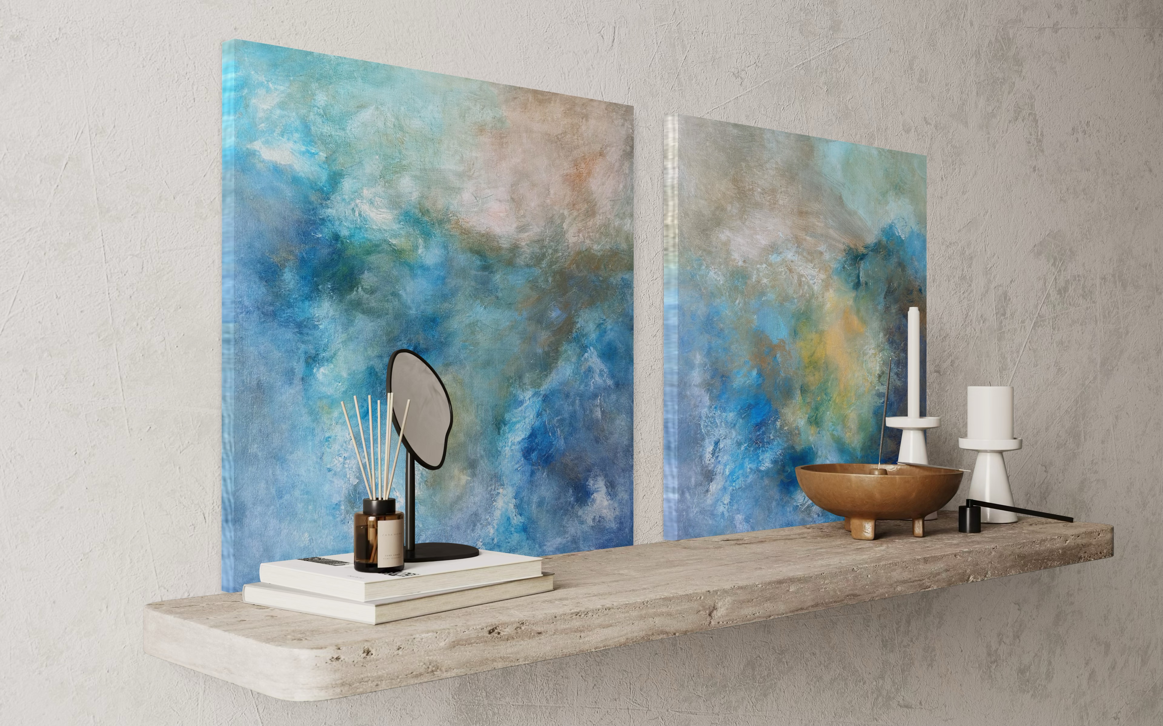 Le dyptique devient ainsi comme un mandala minéral, où chaque panneau dialogue avec l’autre pour créer un espace de méditation. L’œuvre connecte simultanément aux énergies de la terre et de la mer, offrant au spectateur un voyage contemplatif entre surface et profondeur, entre lumière et mystère.